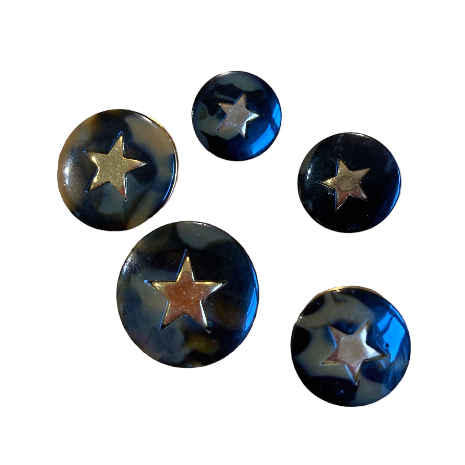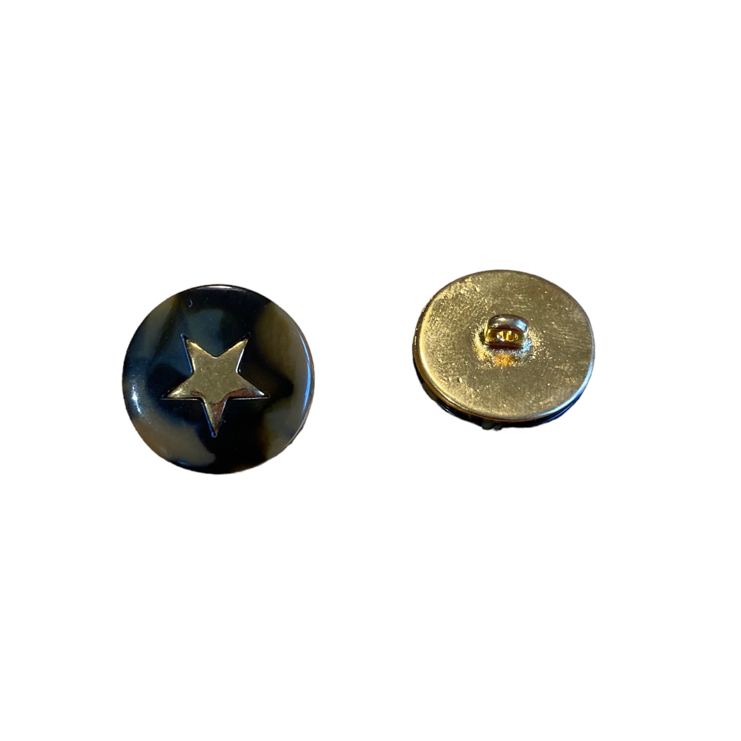 Metallinen nappi. Napissa on taustalla maastokuvioita (ruskean vihreä) ja keskellä kullan värinen tähti. Nappi on kantanappi eli se ommellaan kiinni vaatteeseen napin takana olevasta lenkistä. Nappia on kahta eri kokoa 17 mm ja 22 mm.